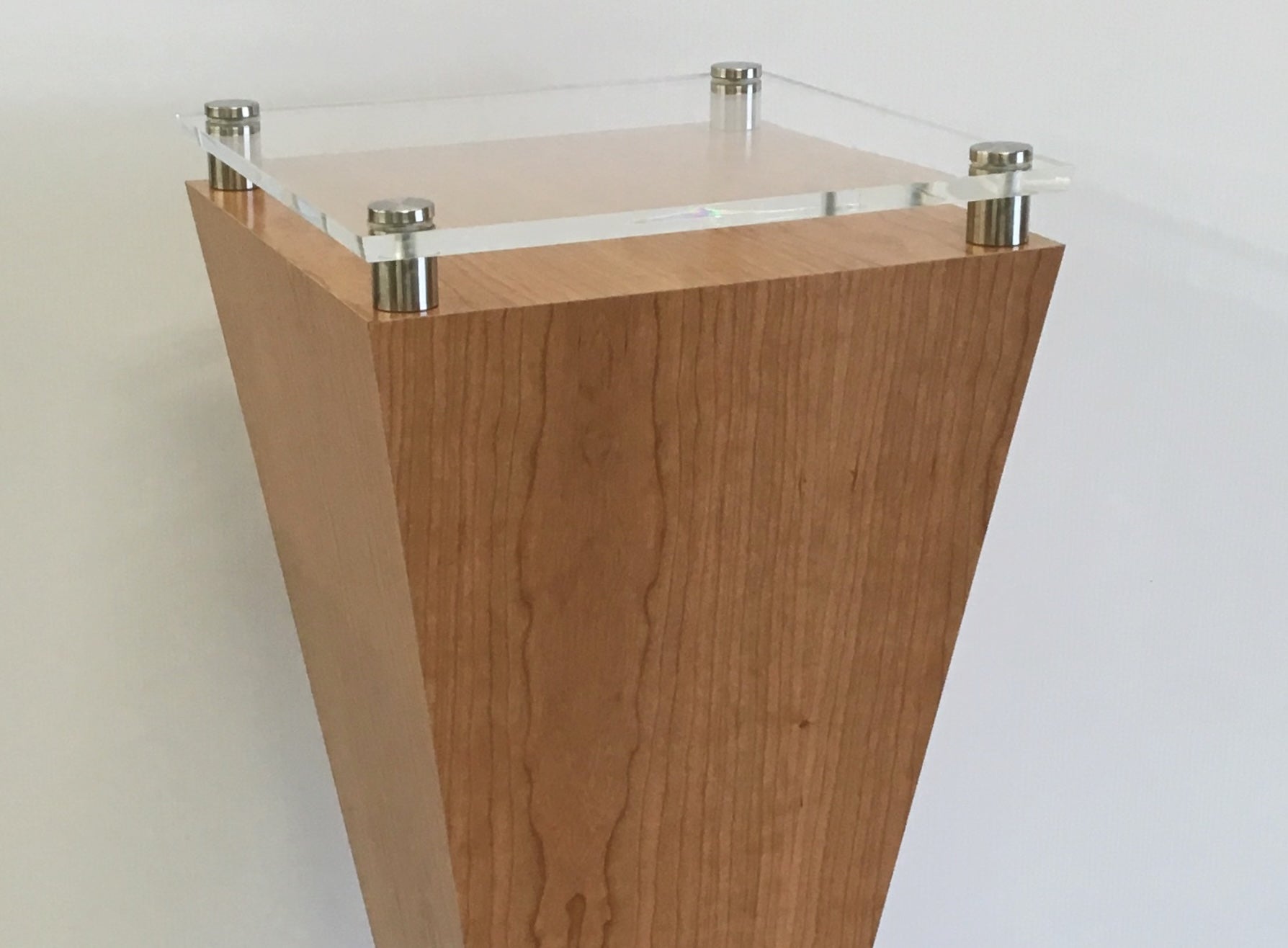 They integrate beautifully with an acrylic cover as well as lighting options such as our ambient or spotlight. Our acrylic standoffs are custom designed for each pedestal or display, so please call for exact details, specifications, and pricing.